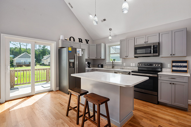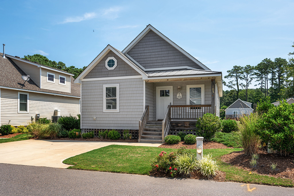 Welcome to the best golf accommodations on the OBX, perfect for your next buddy trip! Each two-bedroom two-bath Kilmarlic Cottage comfortably accommodates four golfers and features a full kitchen, living room and back deck – providing the perfect setting to relax and enjoy the view of the courtyard and natural pond.